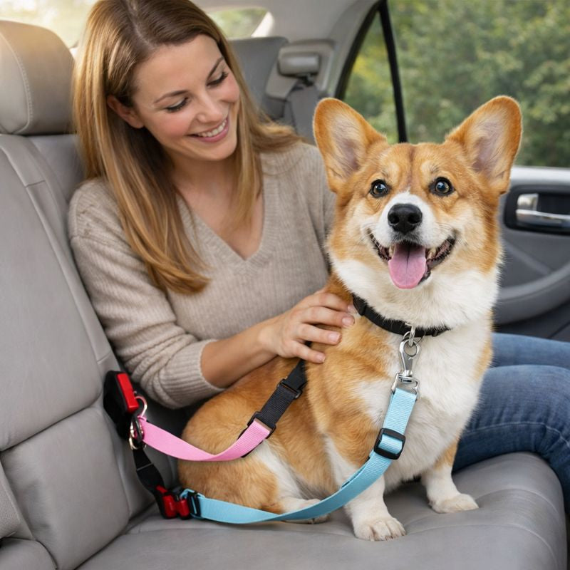 The Adjustable Pet Car Seat Belt keeps your furry friend safe and secure on every trip. Designed for easy use, it prevents pets from roaming while providing them comfort and freedom of movement.