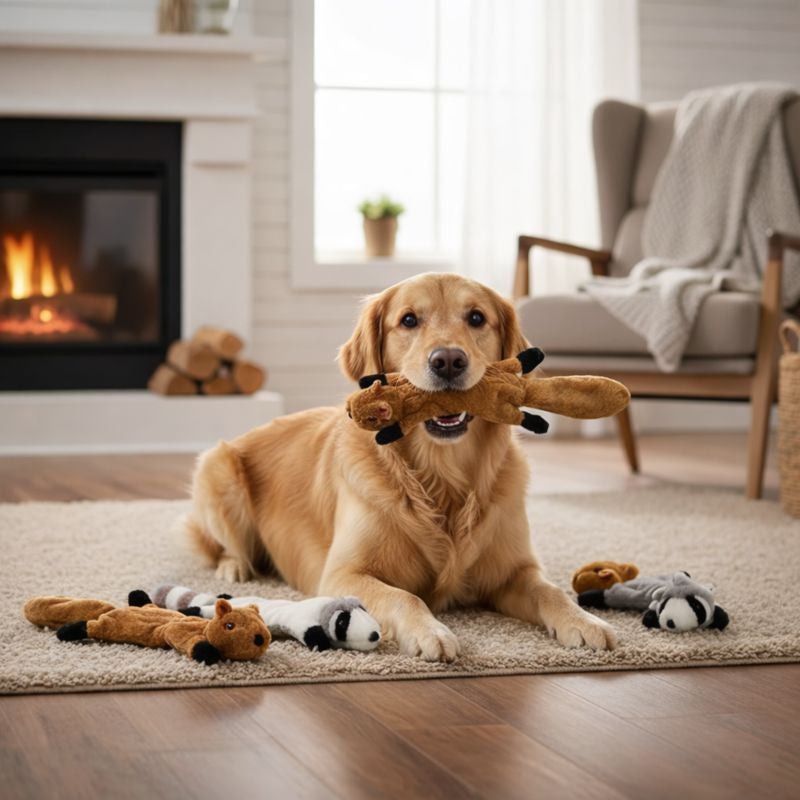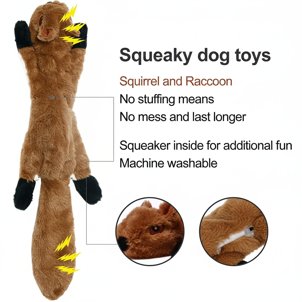 This simulated animal dog toy features multiple squeakers and a fun crinkle sound to intrigue and engage your pup. Its soft, plush fleece design and lack of internal stuffing make it safer and cleaner during tug-of-war and playtime.
